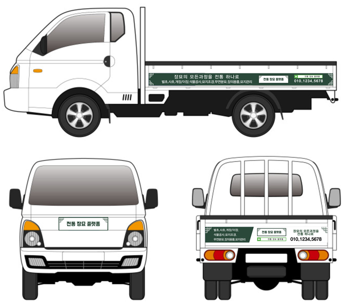 파트너사 상호가 표기된 랩핑 스티커 총 2장 발부 (옆면 1, 후면 1 부착)